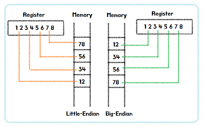 CPU의 종류에 따라 메모리에 바이트를 저장하는 순서가 달라진다.