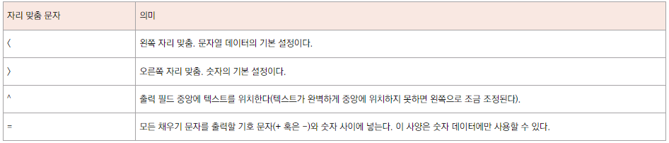 [[채우기]자리맞춤][기호][#][0][너비][,][.정밀도][타입]