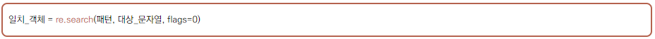 >>> if re.match(ptn, str) : # str이 정규표현식(ptn)과 맞는지 검사